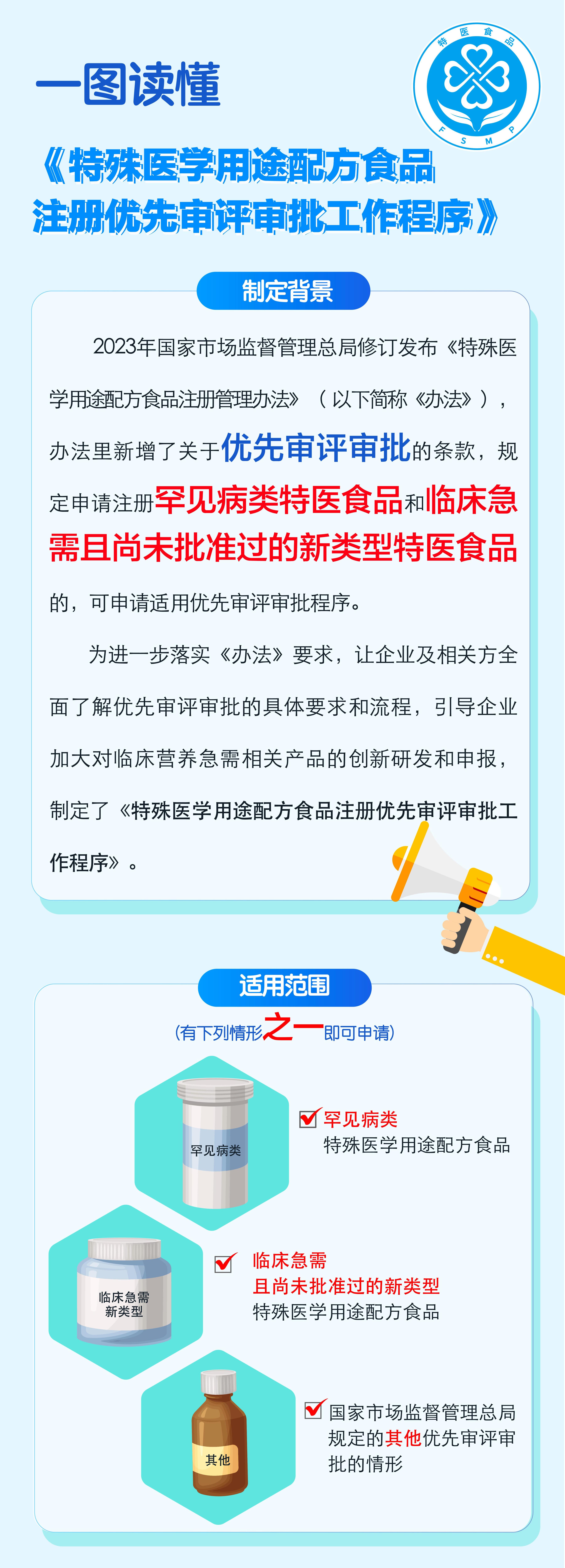 记者今天了解到,市集监管总局近日发布《突出医学用途配方食物注册优先审评审批责任才智》,进一步范例突出医学用途配方食物注册优先审评审批责任,教诲企业加大对荒僻病类特医食物和临床急需的新类型特医食物的革新研发力度,更好闲隙病患临床养分需求。