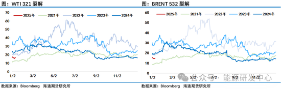 原油商场月差结构合手续走强也进一步响应了对供应垂危心情无间升温,新年来布伦特1-3月差还是走阔了1好意思元达到1.75好意思元,尤其是中国商场关于供应收紧反应愈加明锐。SC原油在最近一个月时刻里也合手续强于西洋油价,跨区价差合手续走强,心情驱动下油价的阐扬超出预期。国内制品油商场最近几个走动日亦然受到供应收紧预期影响大幅冲高,周六早盘多家真金不怕火厂还是径直将制品油价钱提价300元/吨致使更高。强势原油的高涨推动下,西洋制品油裂解差基本匹配了原油涨幅,其中柴油因制裁及寒潮提振需求阐扬更强,汽油相对涨幅弱于原油。